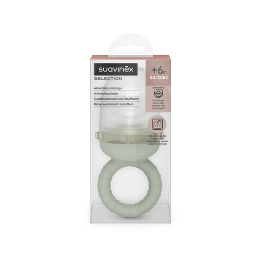 Alimentador antiahogo para bebés +6 meses. Su contenedor de silicona permite colocar fruta o verdura para que el bebé descubra y conozca nuevos sabores de forma segura y autónoma.