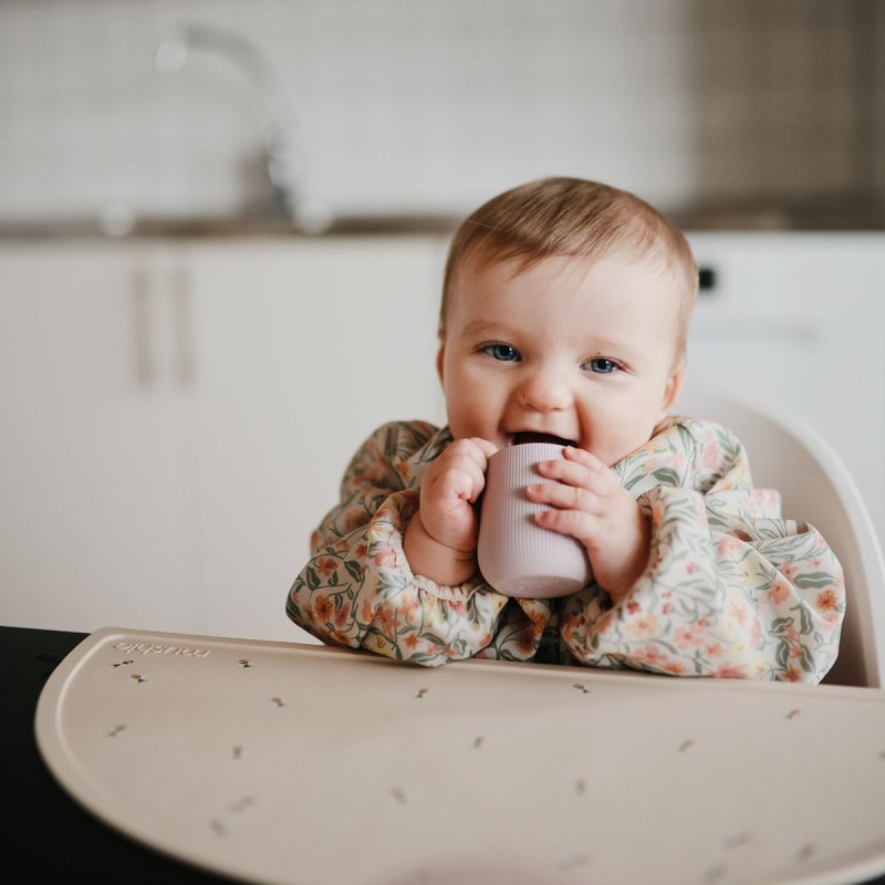¡Babero de manga larga de Mushie para una comida sin líos!
