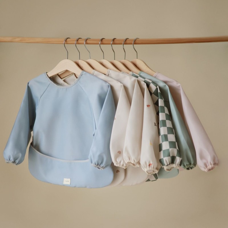 ¡Babero de manga larga de Mushie para una comida sin líos! Con este práctico babero de material resistente al agua evitarás que se ensucie durante la comida: tiene un amplio bolsillo que recogerá fácilmente la comida y evitará que se ensucie el suelo o la ropa. El babero tiene un cierre de velcro en la nuca que asegura un ajuste cómodo. El tamaño es adecuado para niños de entre 6 y 24 meses. El babero se limpia fácilmente con un paño y se puede lavar perfectamente en la lavadora.