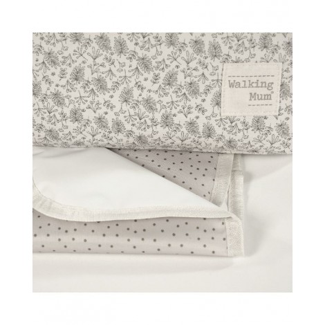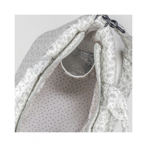 Bolso cambiador Gala Mint con estampado floral para silla de paseo que incluye cambiador para bebe. Bolsa canastilla muy ligera, resistente y de gran capacidad para llevar todo lo necesario para el paseo del bebe. Tiene multiples bolsillos para poder tener todo ordenado. En el interior incopora un bolsillo plastificado para la ropa húmeda, un bolsillo térmico para biberones y dos bolsillos para lo que necesites tener más a mano. La bolsa tiene un sistema universal de fijación, con 2 asas cortas ajustables que facilita la colocación en cualquier modelo de silla de paseo. También incorpora una asa larga para poder colgarla en el hombro y asas cortas para cogerla con la mano. Gran calidad y mucho estilo. Fabricada en algodón 100% con un tratamiento waterproof, de fácil limpieza a mano o a máquina a 30 °C. Walking Mum protege a tu bebé utilizando los mejores tejidos, libres de colorantes azoicos y sustancias nocivas para la salud. Nuestra colección Walking Mum está diseñada con un particular sello de estilo urbano y moderno que no pasa desapercibido, para vestir diferente los paseos con tu bebé. Las bolsas de maternidad de esta línea son más sport y prácticas, especialmente pensadas en mamás y papás modernos que aprecian los diseños más actuales y en tendencia sin dejar de lado la calidad y la funcionalidad de los accesorios que complementan y hacen más cómodos todos los paseos con sus bebés. Especificaciones: Materiales: 100% algodón con tratamiento waterpfoof. Medidas: 42x24x17 cm.