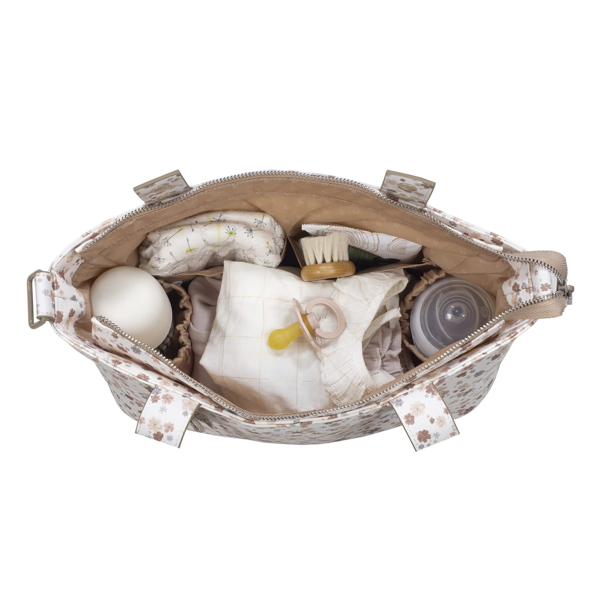 El bolso organizador o crossbody Somerset de Pasito a pasito elaborado en resistente y delicada polipiel impresa en flores para silla de paseo es un modelo muy ligero además de ser resistente y espacioso para que puedas llevar todo lo que podrías necesitar durante el paseo de tu bebé. Aparte de la gran capacidad que tiene, está distribuido para facilitarte la organización, con varios bolsillos que te ayudarán a colocar todos tus complementos ordenados y así puedes ubicarlos más fácil cuando vayas a usarlos. Incorpora un bolsillo interior térmico para botellas o biberones. Viene acondicionado con doble asa, una larga para colgar en el hombro y unas cortas para colgarla al cochecito. Su diseño lo hacen perfecto para usar a diario y combinar con tus looks. Está fabricado con materiales de gran calidad, libres de colorantes azoicos, ftalatos y sustancias nocivas para la salud. Los productos para bebé de Pasito a Pasito cuentan con un diseño muy diferente a todas las demás. Sus colecciones se caracterizan por el trabajo al detallada, pensadas siempre desde un punto de vista práctico. Utilizan materiales de primera calidad para remarcar la elegancia y la armonía en cada una de sus piezas. Nuestros modelos son exclusivos y de estilo inconfundible, pensados para madres actuales que gozan de buen gusto y que aprecian los detalles tanto como nosotros. Especificaciones: Materiales: Eco-leather. Medidas: 30X34X10 cm.