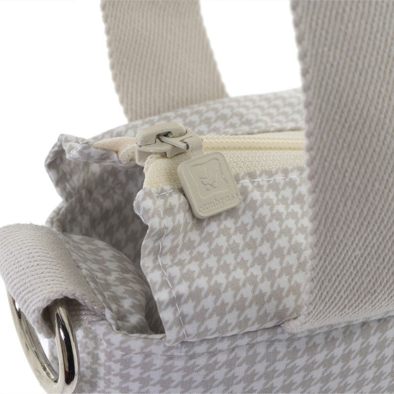 El bolso Talega de Cambrass, está diseñado con medidas perfectas, tanto para el trasporte en el carro como para la mama, este bolso lleva 2 asas que se abrochan con clips para poder colgarlo en el carro, y un asa bandolera, para que la mama se lo pueda colgar del hombro. Sus medidas son ideales para poder transportar todo lo necesario del bebé del día a día. Su perfecta composición hace que lo podamos lavar tanto a mano como en la lavadora. El tamaño del bolso es de 12x40x35cm.