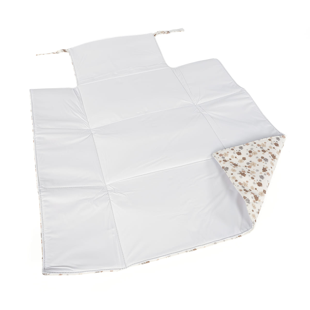 El cambiador para bebé Somerset en flor de Pasito a pasito impreso es un modelo muy cómodo, práctico y fácil de transportar. Un patrón especialmente ideado para utilizarlo cuando necesites cambiar a tu bebé. Está elaborado en delicada y resistente polipiel y es plegable para facilitar su trasladarlo a todos lados. Es un diseño tan elegante como funcional, porque se presenta en formato plegado para hacerlo portátil. Cuenta con cintas de agarre de cierre para mantener el cambiador cerrado y así se reduce su espacio para llevarlo dentro de la bolsa de maternidad. Acabados de calidad. El cambiador de bebé cuenta con un forro interior acolchado e impermeable para hacerlo más fácil de limpiar una vez termines de usarlo y así evitar que se acumulen olores en el interior. Está fabricado con materiales de gran calidad, libres de colorantes azoicos, ftalatos y sustancias nocivas para la salud. Además se puede lavar a mano o a máquina a temperaturas de hasta 30º. Los productos para bebé de Pasito a Pasito cuentan con un diseño muy diferente a todos los demás; gracias a sus colecciones más trabajadas, caprichosas y a la vez prácticas, que utilizan materiales de primera calidad para remarcar la elegancia y la armonía en cada una de sus piezas. Nuestros modelos son exclusivos y de estilo inconfundible, pensados en madres actuales que gozan de buen gusto y que aprecian los detalles tanto como nosotros. Especificaciones: Materiales: Eco-leather. Medidas: 52X71X1 cm.