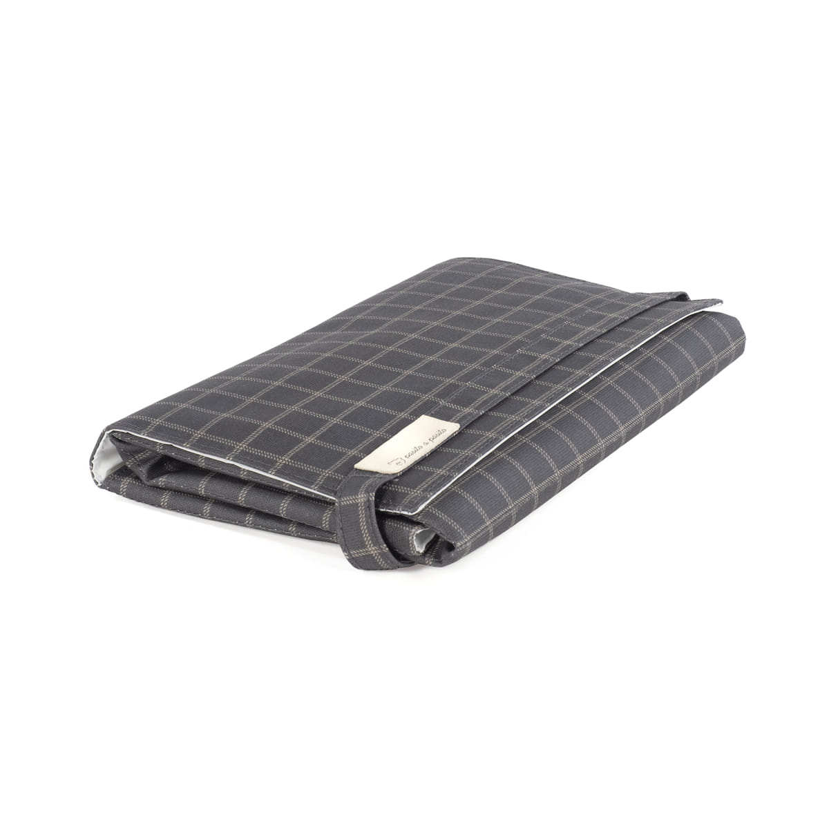 El cambiador para bebé Tartan en cuadro gris de Pasito a pasito elaborado en resistente algodón con un tratamiento waterproof es un modelo muy cómodo, práctico y fácil de transportar. Un patrón especialmente ideado para utilizarlo cuando necesites cambiar a tu bebé. Es plegable para facilitar su trasladarlo a todos lados. Es un diseño tan elegante como funcional, porque se presenta en formato plegado para hacerlo portátil. Cuenta con cintas de agarre de cierre para mantener el cambiador cerrado y así se reduce su espacio para llevarlo dentro de la bolsa de maternidad. Acabados de calidad. El cambiador de bebé cuenta con un forro interior acolchado e impermeable para hacerlo más fácil de limpiar una vez termines de usarlo y así evitar que se acumulen olores en el interior. Está fabricado con materiales de gran calidad, libres de colorantes azoicos, ftalatos y sustancias nocivas para la salud. Además se puede lavar a mano o a máquina a temperaturas de hasta 30º. Los productos para bebé de Pasito a Pasito cuentan con un diseño muy diferente a todos los demás; gracias a sus colecciones más trabajadas, caprichosas y a la vez prácticas, que utilizan materiales de primera calidad para remarcar la elegancia y la armonía en cada una de sus piezas. Nuestros modelos son exclusivos y de estilo inconfundible, pensados en madres actuales que gozan de buen gusto y que aprecian los detalles tanto como nosotros. Especificaciones: Materiales: 100% algodón con tratamiento waterproof. Medidas: 52X71X1 cm.