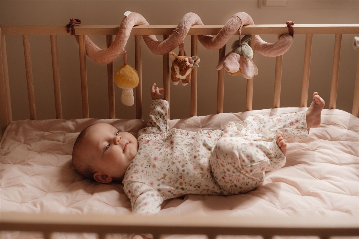 ¡Mira, siente y descubre! Esta divertida y entretenida espiral de actividades mantendrá a los bebés ocupados tanto en casa como cuando están de viaje. Fija fácilmente este práctico juguete a cualquier lugar, desde una cuna hasta un corralito. Fortalece los sentidos y estimula la coordinación mano-ojo. La espiral de actividades está hecha de pana con algodón y presenta un pequeño ciervo, un pequeño hongo y una hermosa flor.