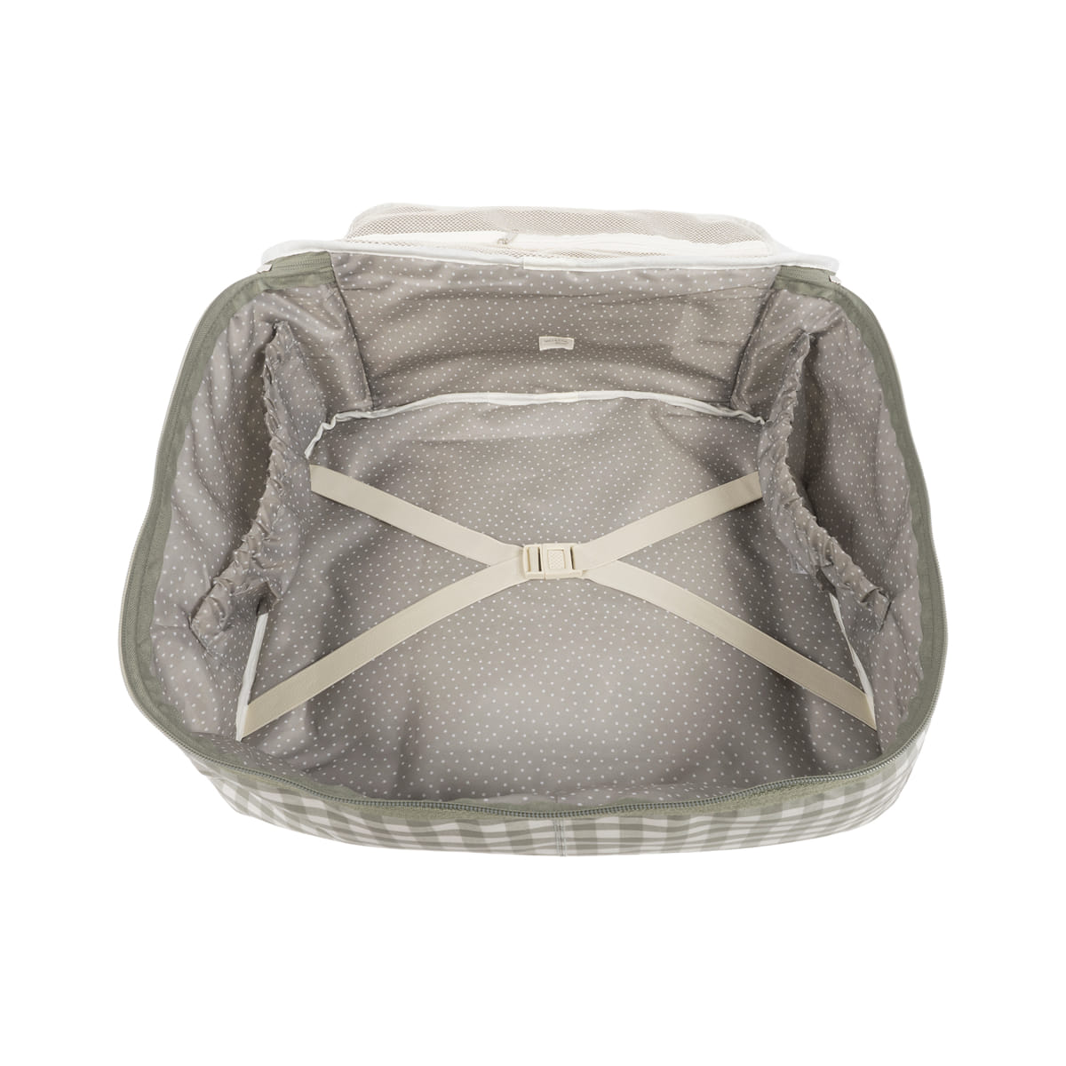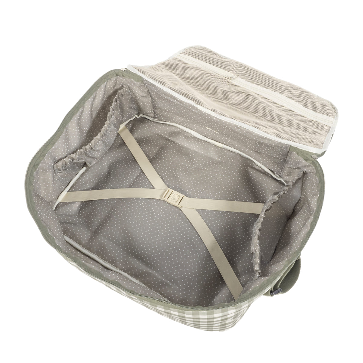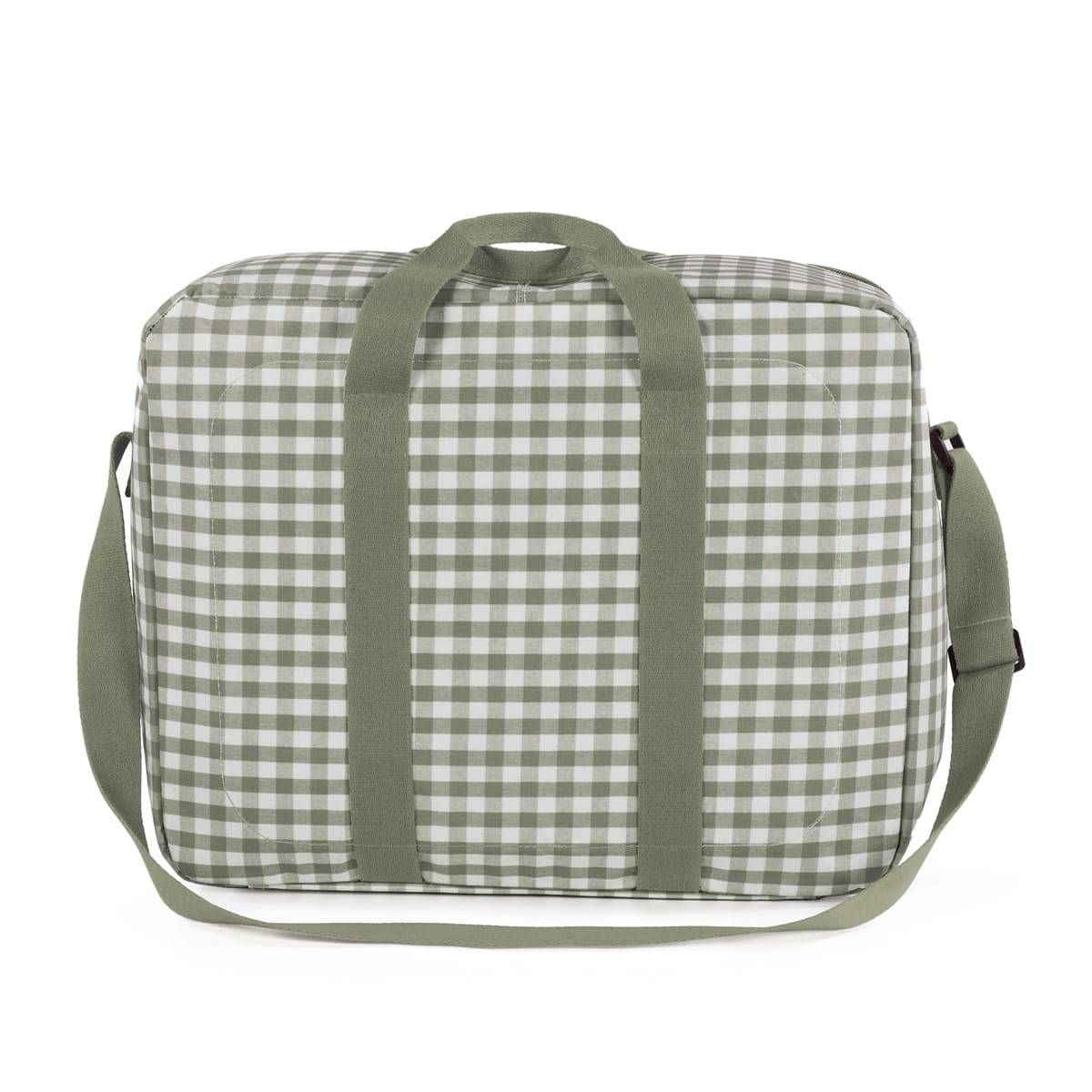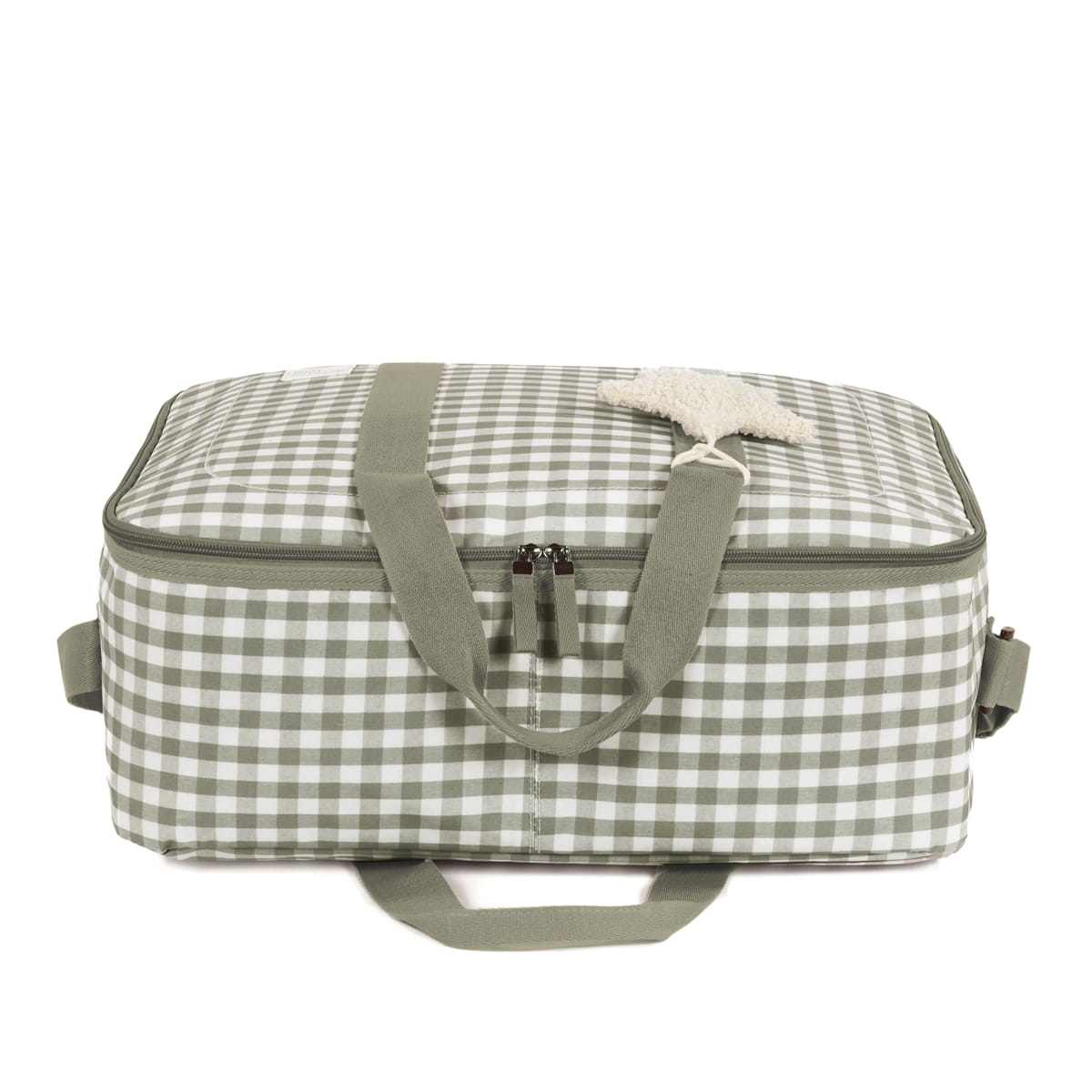 La maleta de bebé Caetana Stone de cuadros verdes es un bolso especialmente diseñado para el momento más importante del embarazo, que es la llegada de tu bebé, momento en el que hay un montón de cosas que preparar. Por esto necesitas un espacio cómodo para transportar todo lo necesario para ti, el padre y el niño. Esta maleta de bebé es el modelo perfecto para cubrir todo lo que no puede faltar en este día tan especial. Es cómoda, ligera y manejable con dimensiones rectangulares y apertura práctica para tener todas tus necesidades cubiertas. Cuenta con cierre seguro de cremallera en ambas direcciones que facilitan su apertura, incluye una correa larga para llevar colgada en el hombro y asas cortas de mano. Además en el compartimiento interior tiene un forro a juego con gomas para contener la ropa y mantener todo en su lugar. Incluye un charm en forma de estrella donde puedes bordar el nombre de tu bebé para personalizar el bolso. Gran calidad y mucho estilo. Fabricado en un material resistente y de fácil limpieza a mano o a máquina a 30 °C. Walking Mum protege a tu bebé utilizando los mejores tejidos, libres de colorantes azoicos y sustancias nocivas para la salud. Nuestra colección Walking Mum guarda toda la calidad de la marca Pasito a Pasito pero con un particular sello de estilo urbano y moderno que no pasa desapercibido, para vestir diferente los paseos con tu bebé. Las bolsas de maternidad de esta línea son más sport y prácticas, especialmente pensadas en mamás y papás modernos que aprecian los diseños más actuales y en tendencia sin dejar de lado la calidad y la funcionalidad de los accesorios que complementan y hacen más cómodos todos los paseos con sus bebés. Especificaciones: Materiales: 65% algodón /35% poliéster plastificado. Medidas: 49X37X17 cm.