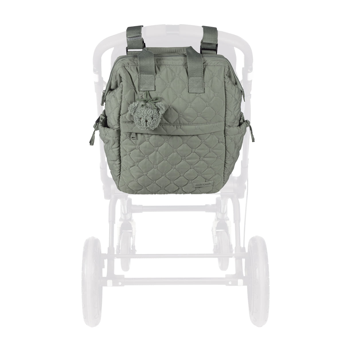 Mochila Paddington verde de Pasito a pasito elaborado en un resistente material acolchado. De gran capacidad para llevar todo lo que necesitas tu y tu bebé. Bolsillos interiores y exteriores para tenerlo todo a mano y en orden. Tiene un bolsillo interior térmico para biberones y un bolsillo plastificado para la ropa mojada. También incorpora dos bolsillos laterales para botellas o biberones. Tiene 2 asas grandes ajustables para que puedas usarla colgada a la espalda, asas de mano y otras dos asas pequeñas para que puedas usarla colgada del carrito del bebé. Incluye cambiador. Está fabricado con materiales de gran calidad, libres de colorantes azoicos, ftalatos y sustancias nocivas para la salud. Además se puede lavar a mano o a máquina a temperaturas de hasta 30º. Los productos para bebé de Pasito a Pasito cuentan con un diseño muy diferente a todas las demás. Sus colecciones se caracterizan por el trabajo al detallada, pensadas siempre desde un punto de vista práctico. Utilizan materiales de primera calidad para remarcar la elegancia y la armonía en cada una de sus piezas. Nuestros modelos son exclusivos y de estilo inconfundible, pensados para madres actuales que gozan de buen gusto y que aprecian los detalles tanto como nosotros. Especificaciones: Materiales: 100% poliéster. Medidas: 27X37X15 cm.