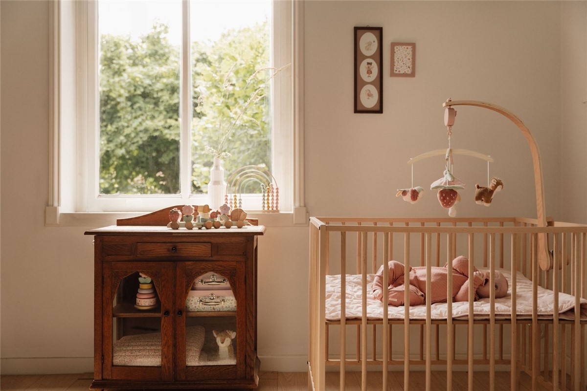 Sigue el sonido y observa cómo giran el cervatillo y el pajarito. Este simpático móvil musical de madera tiene un efecto relajante en los bebés gracias a la dulce canción de cuna. Cuenta con cinco juguetes colgantes diferentes para mirar de la colección Fairy Garden: un cervatillo, una fresa, una flor, una seta y un pájaro. Mientras tu pequeño disfruta del movimiento de cada juguete, el móvil musical estimula el desarrollo visual. El móvil musical es adecuado desde el nacimiento y es fácil de colocar en la cuna o el parque infantil.