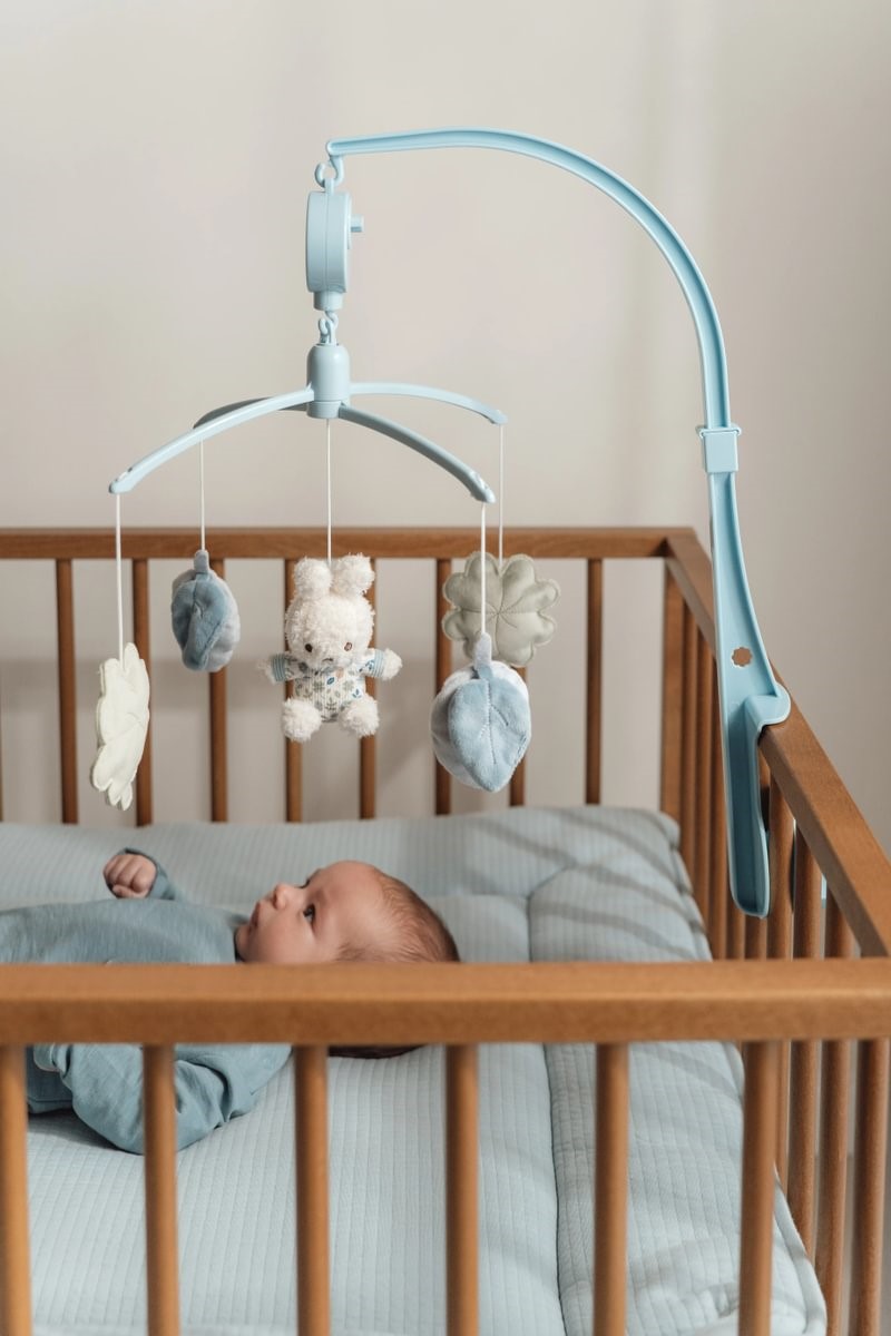 ¡Sigue a Miffy mientras empieza a sonar la canción! Está rodeada de hojas del diseño Lucky Leaves de Little Dutch. Mientras las hojas y Miffy dan vueltas a su alrededor, la dulce música te tranquiliza. Un entretenimiento encantador para tu pequeño que estimula el desarrollo visual. El móvil musical es adecuado desde el nacimiento y se puede colocar fácilmente en una cuna o en un corralito.
