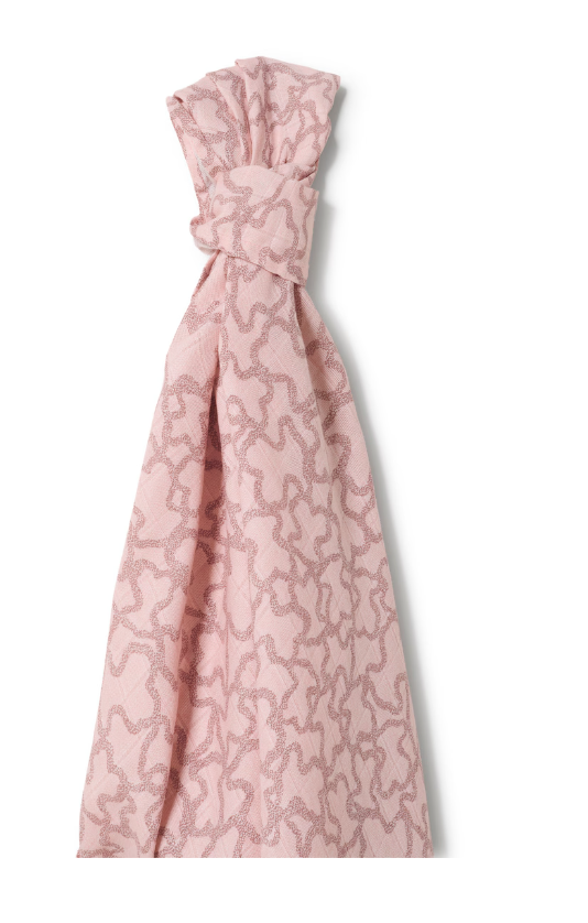 Muselina Baby TOUS de tejido bambú transpirable antialergénico en estampado Home kaos. Se utiliza para arrullar al bebé o protegerlo del sol en el cochecito. COMPOSICIÓN: 53% Algodón 47% Viscosa. Color rosa. MED: 118x98cm. Certificado OEKO/TEX*. Fabricado en la UE.