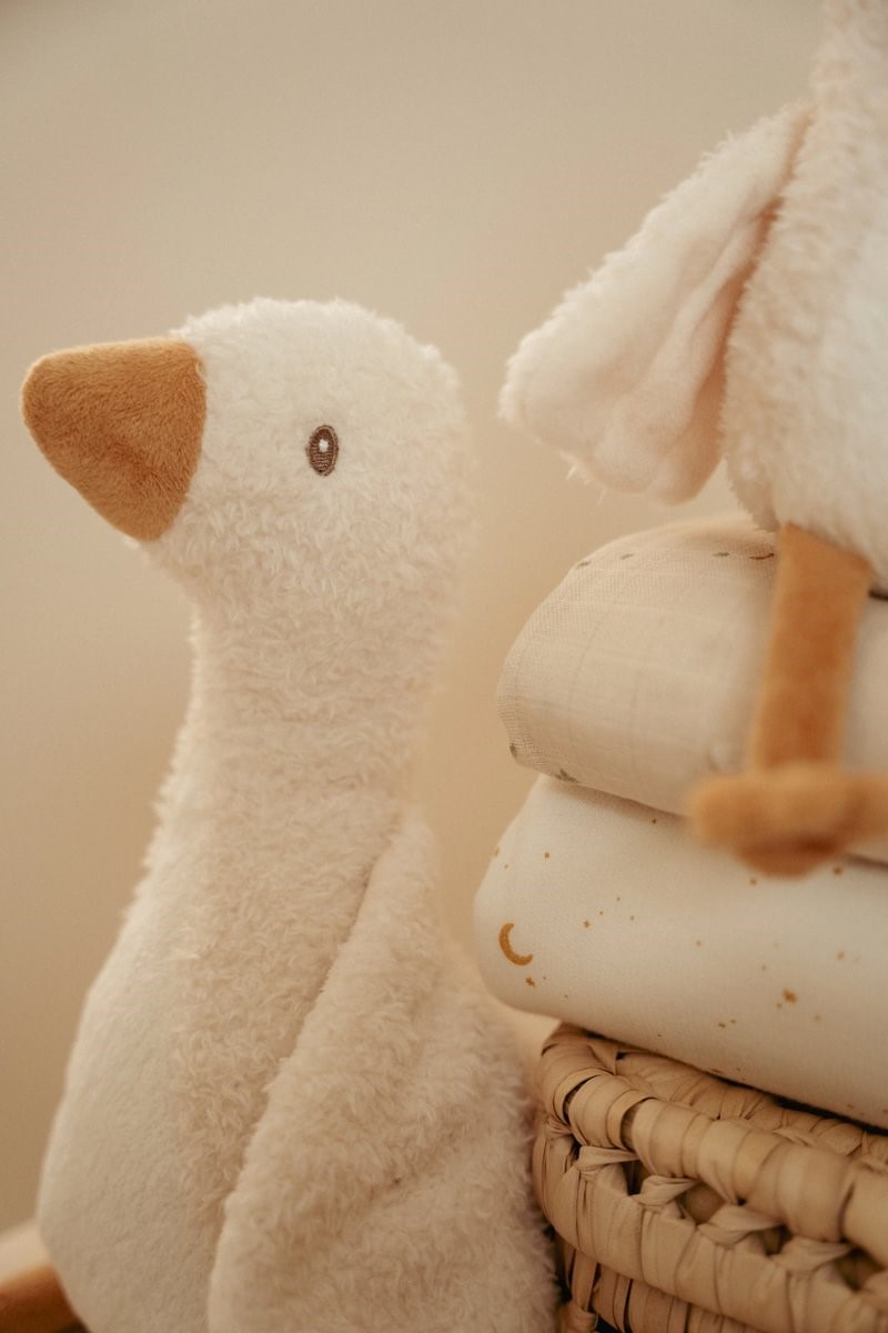 Una gran amiga de peluche para pequeños exploradores. La oca es suave, mimosa y siempre lista para la aventura. Con su pelaje esponjoso y sus alas abiertas, se siente como en casa en cualquier lugar, desde la habitación del bebé hasta un viaje. Perfecto para acurrucarse, jugar con ella y recibir abrazos sin fin. ¡Un compañero fiel para el día y la noche!
