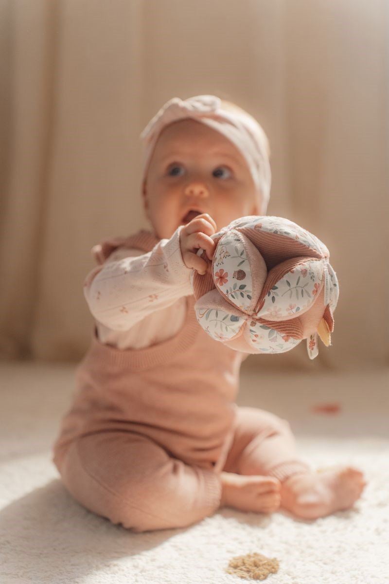¡Cógela y llévala! Esta pelota montessori de agarre con su forma interesante es un gran desafío para tu pequeño. Hay muchos lugares para agarrar y explorar con diferentes texturas y patrones. Es fácil de agarrar para las pequeñas manos y cuando se mueve, el alegre sonido del sonajero animará a tu bebé. En la dulce decoración de Fairy Garden, los nudos fáciles de agarrar y las diversas etiquetas estimularán los sentidos, desarrollarán el agarre y mantendrán a tu bebé entretenido en el parque infantil.