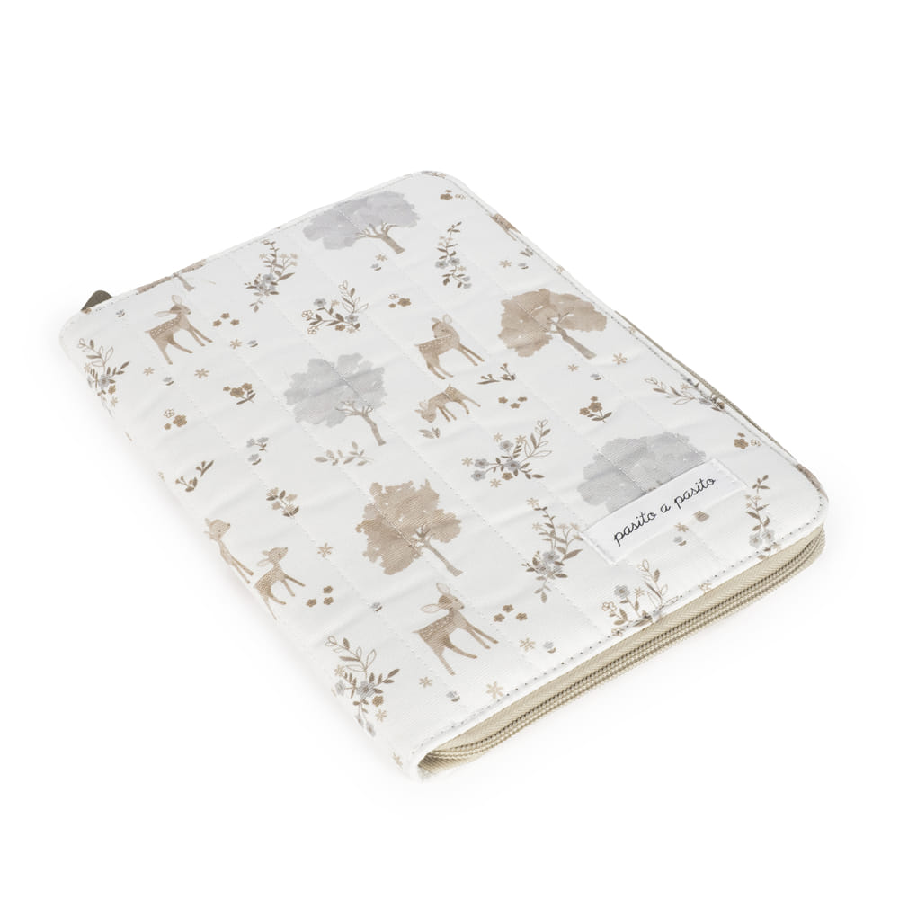 Este moderno y bonito libro de nacimiento para bebé Nara de Pasito a pasito elaborado en loneta de algodón 100% con un delicado estampado de ciervos y árboles en tonos neutros, es un funcional portadocumentos de diseño a juego con la bolsa de maternidad. Un complemento indispensable para llevar contigo a todas partes que te ayudará a tener ordenada toda la documentación y papeles médicos de tu bebé. También es una buena idea como libro donde puedes guardar documentos con progresos, datos importantes y todo lo que quieras conservar relacionado con tu bebé. Este libro portadocumentos esta elaborado en resistente y suave material, cuenta con bolsillos en cada lado y está forrado en el interior. Cuenta con un práctico cierre de cremallera para así guardar seguro el libro de nacimiento y todos los documentos de tu bebé. Acabados de calidad. Está fabricado con materiales de gran calidad, libres de colorantes azoicos, ftalatos y sustancias nocivas para la salud. Además se puede lavar a mano o a máquina a temperaturas de hasta 30º. Los productos para bebé de Pasito a Pasito cuentan con un diseño muy diferente a todas las demás. Sus colecciones se caracterizan por el trabajo al detallada, pensadas siempre desde un punto de vista práctico. Utilizan materiales de primera calidad para remarcar la elegancia y la armonía en cada una de sus piezas. Nuestros modelos son exclusivos y de estilo inconfundible, pensados en las madres actuales que gozan del buen gusto y que aprecian los detalles tanto como nosotros. Especificaciones: Materiales: 100% algodón. Medidas: 17X25X2 cm.