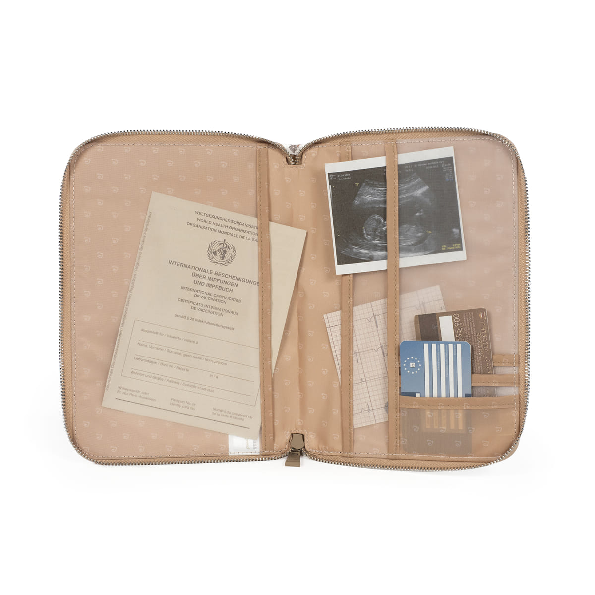 Este moderno y bonito libro de nacimiento para bebé Somerset flor de Pasito a pasito es un funcional portadocumentos de diseño a juego con la bolsa de maternidad. Un complemento indispensable para llevar contigo a todas partes que te ayudará a tener ordenada toda la documentación y papeles médicos de tu bebé. Tambien es una buena idea como libro donde puedes guardar documentos con progresos, datos importantes y todo lo que quieras conservar relacionado con tu bebé. Este libro portadocumentos esta elaborado en resistente y suave polipiel impresa, cuenta con bolsillos en cada lado y está forrado en el interior. Cuenta con un práctico cierre de cremallera para así guardar seguro el libro de nacimiento y todos los documentos de tu bebé. Acabados de calidad. Está fabricado con materiales de gran calidad, libres de colorantes azoicos, ftalatos y sustancias nocivas para la salud. Además se puede lavar a mano o a máquina a temperaturas de hasta 30º. Los productos para bebé de Pasito a Pasito cuentan con un diseño muy diferente a todas las demás. Sus colecciones se caracterizan por el trabajo al detallada, pensadas siempre desde un punto de vista práctico. Utilizan materiales de primera calidad para remarcar la elegancia y la armonía en cada una de sus piezas. Nuestros modelos son exclusivos y de estilo inconfundible, pensados en las madres actuales que gozan del buen gusto y que aprecian los detalles tanto como nosotros. Especificaciones: Materiales: Eco-leather. Medidas: 17X25X2 cm.