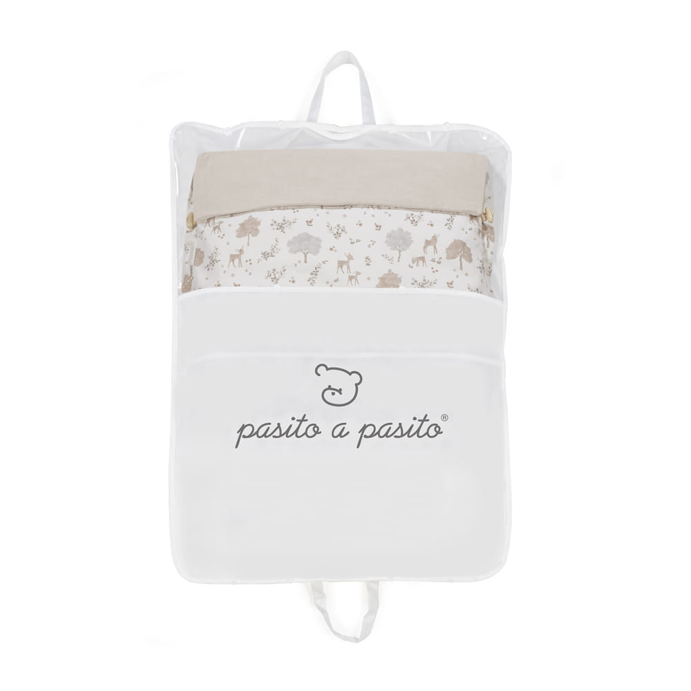 El saco cuco Nara de Pasito a Pasito es un saco de dormir para bebé elaborado en tejido de algodón y bambula muy suave en el interior. Es un accesorio básico 3 en 1 que sirve para utilizarlo en casa para cubrir el portabebé Grupo 0 y también le va muy bien como cubre capazo. Trasera con material anti-sudoración que evita la sudoración excesiva del bebe y protege la silla haciendo el paseo más confortable. Relleno de fibra hueca extraíble. Es totalmente universal porque dispone de varias aperturas (ojales) y ajustes necesarios para adaptarla a la mayoría de los cucos, portabebés y sillas de paseo en su interior. Un complemento muy útil y versátil en las cosas de tu bebé. Una vez desenfundada la base se convierte en colchoneta ligera para la silla de paseo. Prepara con mucho amor el nido rosa de tu niña/niño y decora sus sueños con un toque diferente en donde quiera que lo recuestes. Una manta acolchada y esponjosa que permite disfrutar de un descanso más agradable con la forma acogedora que tiene de nido. Es un diseño bonito, simple y cómodo que crea un nido para tu bebé manteniéndolo arropado y protegido en días de brisa. El saco se adapta sin problemas a cualquier coche para darle la comodidad que necesita. Acabados de calidad. Todas nuestras fundas están fabricadas conforme a las más exigentes normativas europeas, con materiales de gran calidad, libres de colorantes azoicos, ftalatos y sustancias nocivas para la salud. Tela de fácil limpieza, se recomienda lavar a máquina a 30º. Los productos para bebé de Pasito a Pasito cuentan con un diseño muy diferente a todas las demás. Sus colecciones se caracterizan por el trabajo al detallada, pensadas siempre desde un punto de vista práctico. Utilizan materiales de primera calidad para remarcar la elegancia y la armonía en cada una de sus piezas. Nuestros modelos son exclusivos y de estilo inconfundible, pensados en las madres actuales que gozan de buen gusto y que aprecian los detalles tanto como nosotros. Especificaciones: Materiales: 100% algodón. Universal.