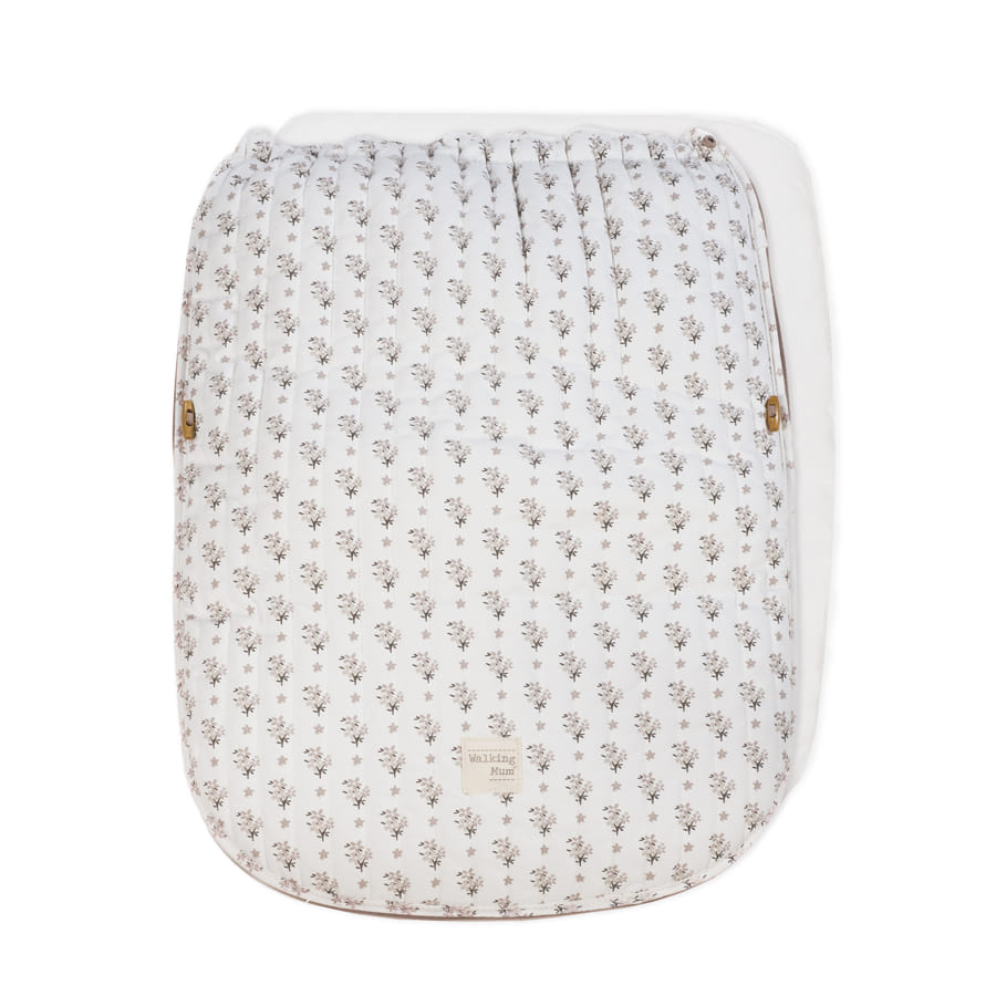 La funda de silla para bebé Botton con estampado floral está fabricado con un tejido de 100% algodón. Es la funda ideal para cubrir la base de la silla de paseo y viene provista de saco para arropar a tu bebé. Con este saco tu bebé estará cómodo durante los meses de primavera y de otoño. Trasera con material anti-sudoración que evita la sudoración excesiva del bebe. Relleno extraíble. Su esquema dispone de varias aperturas (ojales) y ajustes con los que se te hará más fácil adaptarla a la mayoría de los cochecitos, convirtiendo el paseo de tu bebé seguro y confortable. Está elaborado con un material resistene y cálido. Cuenta con una base de poliéster en el reposapiés que facilita la limpieza posterior a su uso. Es un diseño bonito, simple y cómodo que crea un nido para tu bebé manteniéndolo arropado y protegido. El saco se adapta sin problemas a cualquier coche y le permite disfrutar de un descanso más agradable con la forma acogedora que tiene de nido.Gran calidad y mucho estilo. Fabricado en materiales resistentes y de fácil limpieza a mano o a máquina a 30 °C. Walking Mum protege a tu bebé utilizando los mejores tejidos, libres de colorantes azoicos y sustancias nocivas para la salud. Nuestra colección Walking Mum guarda toda la calidad de la marca Pasito a Pasito pero con un particular sello de estilo urbano y moderno que no pasa desapercibido, para vestir diferente los paseos con tu bebé. Los accesorios de esta línea son más sport y prácticas, especialmente pensadas en mamás y papás modernos que aprecian los diseños más actuales y en tendencia sin dejar de lado la calidad y la funcionalidad de complemetos que hacen más cómodos todos los paseos con sus bebés. Medidas: 47 x 90 cm.