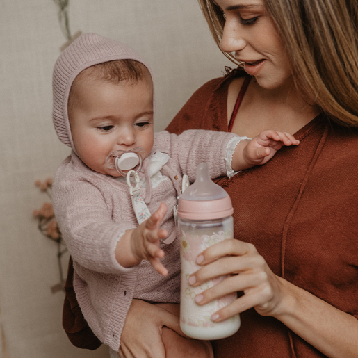 • 1x Biberón 270ml con tetina fisiológica de silicona, de flujo M.