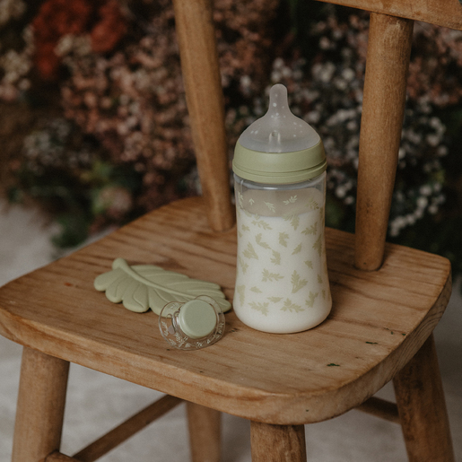 • Biberón 270ml con tetina fisiológica de silicona, de flujo M.