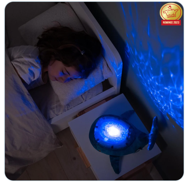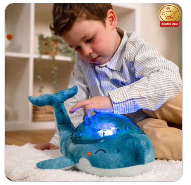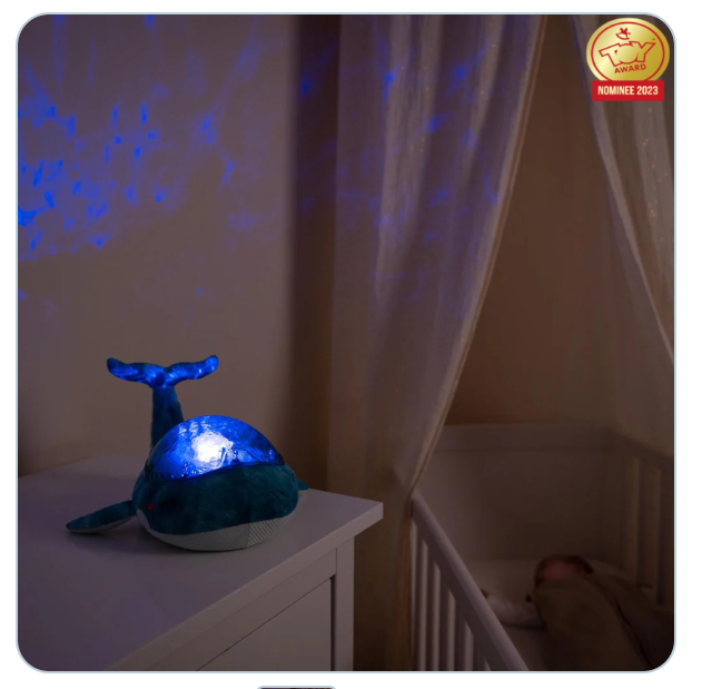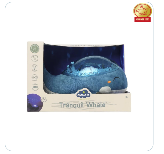 Tranquil Whale™ – Azul (Recargable) es una simpática ballena, fabricada con fibras 100% recicladas de botellas de plástico, que brilla con una suave luz y proyecta olas oceánicas en movimiento en el techo del dormitorio, gracias a un exclusivo mecanismo patentado. La luz nocturna Tranquil Whale™ – Azul (Recargable) calma al bebé y tranquiliza a los niños que tienen miedo a la oscuridad. Suave peluche durante el día, se transforma en luz nocturna por la noche. Su efecto de luz submarina es mágico, gracias a la proyección de olas en movimiento. Melodías y ruidos blancos tranquilizarán a los más pequeños para llevarlos camino del sueño. Dispone de 4 sonidos relajantes: melodía subacuática, melodía tranquila, canto de ballena , olas del mar (ruido blanco) y 6 niveles de volumen ajustables. Un dispositivo inteligente sensor de llanto, con sensibilidad ajustable, se activa automáticamente al primer llanto del bebé. Es posible ajustar el brillo de la proyección para crear diferentes ambientes. El temporizador de 23 minutos garantiza oscuridad total y silencio mientras el niño/la niña duerme profundamente. La batería se recarga mediante un cable USB-C. Tranquil Whale™ – Azul (Recargable) ha recibido la certificación GRS y utiliza embalajes con certificación FSC que contribuyen a la sostenibilidad de la biodiversidad. Tranquil Whale™ – Azul (Recargable) es un peluche eco-responsable y respetuoso con el medio ambiente.