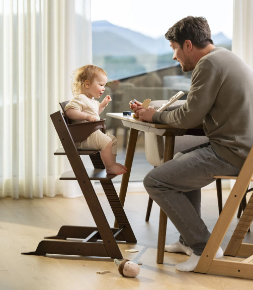 La silla Tripp Trapp® + Baby Set² y Tripp Trapp® Newborn Set es nuestra solución 3-en-1 que acerca a tu bebé a la mesa del comedor, junto con toda la familia. Luego pasa a ayudarle a sentarse a partir de 6 meses con el Baby Set².